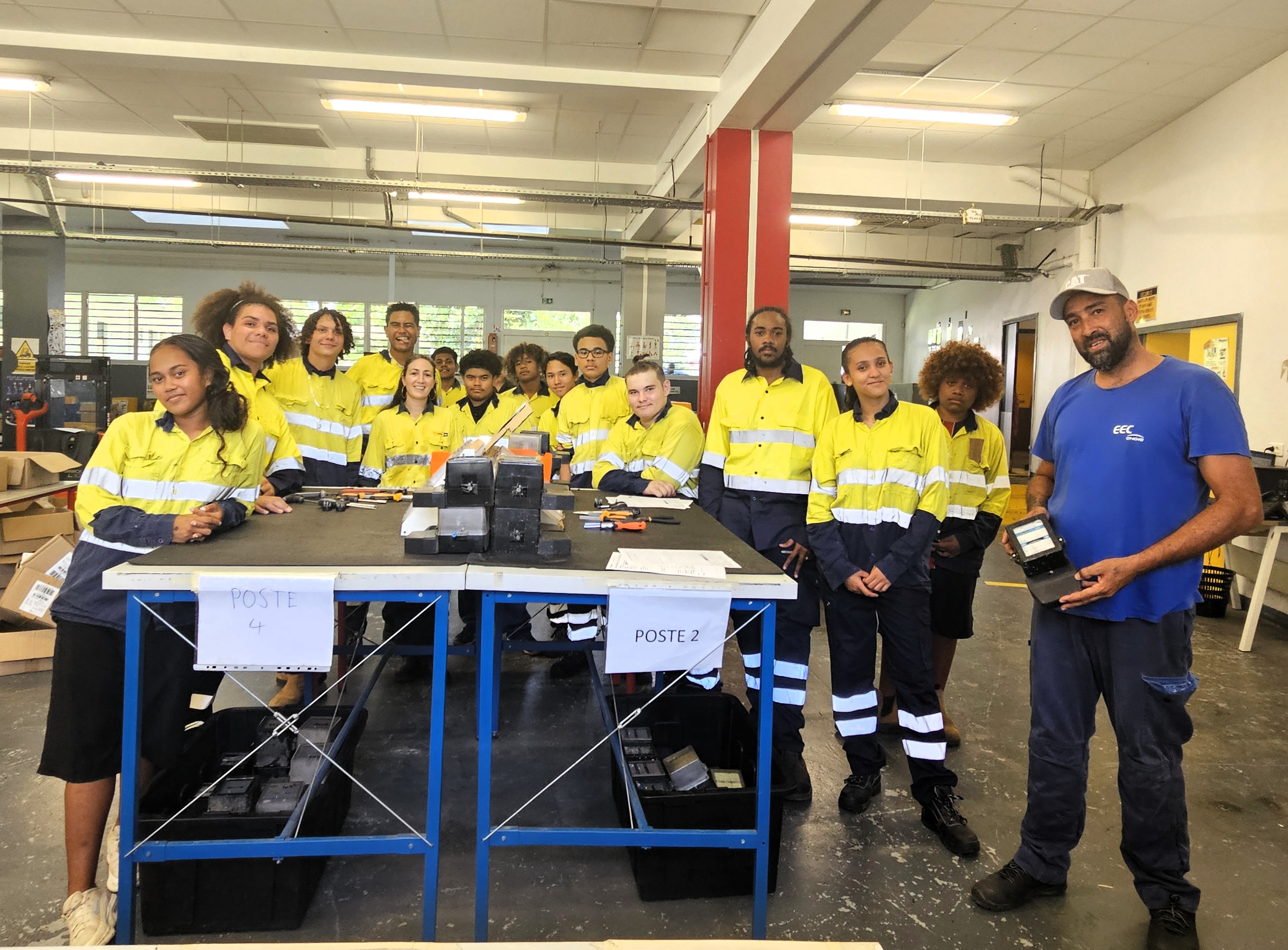 Le remplacement de près de 70 000 compteurs classiques par les Compteurs Nouvelle Génération génère un important volume de matériel à traiter. Pour éviter leur mise en décharge, EEC confie une partie de ces compteurs aux filières professionnelles du Lycée du Mont Dore, membres du cluster ACOTRED Pacifique, où les élèves apprennent à trier et orienter les déchets électriques.